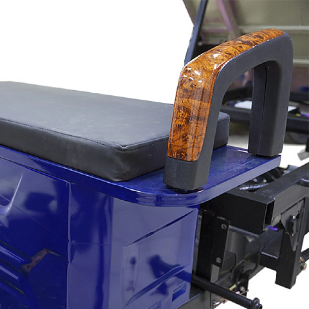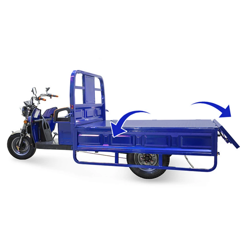 Мощность двигателя составляет 1500 Вт, в сочетании с гелевой тяговой батареей модель способна развивать скорость до 25 км/час и преодолевать 80 км пути. Модель оснащена вместительным кузовом, рассчитанным на грузоподъемность 1т. Управлять элеткротрициклом просто. Всесезонная техника оснащена зеркалом заднего вида, мощной светодиодной фарой, удобным комфортным сиденьем. При эксплуатации транспорта производитель предупреждает об осторожности нахождения под кузовом в поднятом состоянии. Фиксация кузова на предусмотрена в положении подъема.