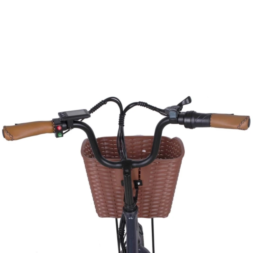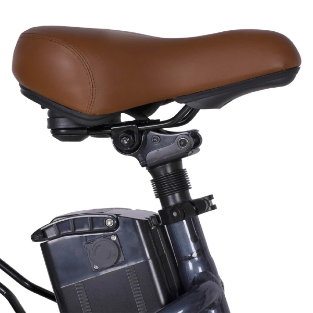 Электровелосипед имеет заниженную раму, что удобно для эксплуатации тс представителями женского пола. Удобное комфортабельное седло регулируется под рост ездока. Педали не вызывают усталости и отека ног. Рулевая часть наполнена многочисленным функционалом, благодаря которому контроль остается за райдером.