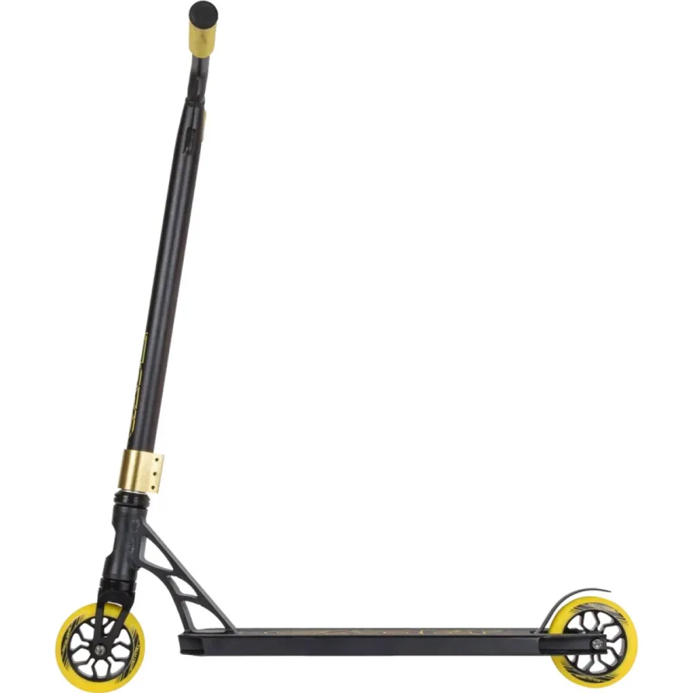 «Y»-образная форма руля стальная, параметры высоты от зажима составляют 57 см, от поверхности – 79,5 см. Длина и ширина руля – 54см*34,9см соответственно. Ручки самоката оснащены прорезиненными мягкими грипсами, повторяющими анатомические особенности рук райдера. Материал изготовления смягчает удары, исключают травмирование, увеличивают степень фиксации. Руль крепко зажат трехболтовыми зажимами.